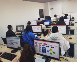 比赛分为两个环节,上午各参赛队伍在理工楼202室现场制作参赛作品,参赛作品制作限时4个小时,包括讲解教学设计的展示课件、实际教学实施的课件、教学实施报告的展示课件和文档。制作过程中,每个参赛团队既根据成员专长进行了科学合理的分工,也进行了相互检查、修改完善等方面的精诚合作,充分展现了团队协作精神。