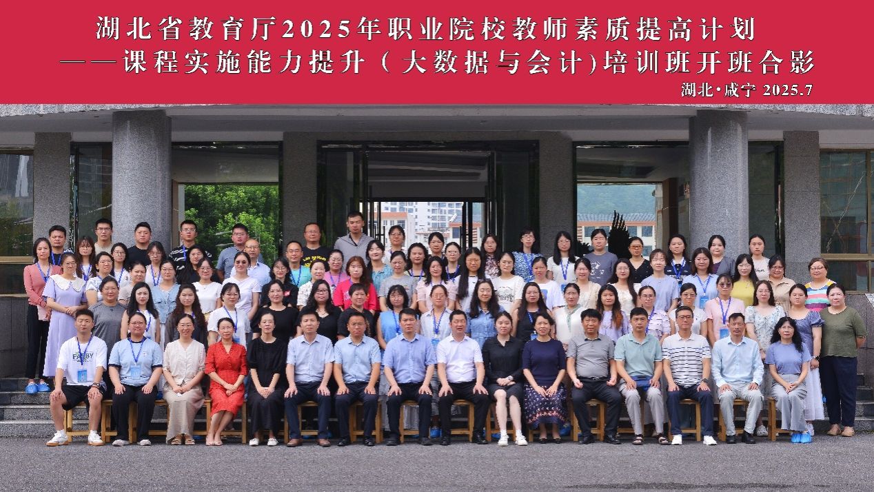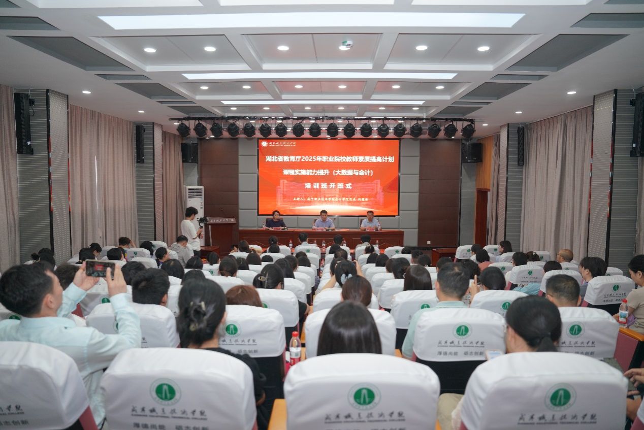 2025年7月14日上午,由湖北省教育厅主办、太阳成集团tyc9728承办的“2025年职业院校教师素质提高计划(国培项目)——大数据与会计课程实施能力提升培训班”开班仪式在太阳成集团tyc9728教育实训中心隆重举行。副董事长方旭出席仪式并致辞,厦门网中网软件有限公司大区总经理杨凤坤作为特邀嘉宾出席。来自全省34所中职院校、31所高职院校的80名骨干教师齐聚咸宁职院,开启为期三周的集中培训。开班仪式由太阳成集团tyc9728经理何慧玲主持。