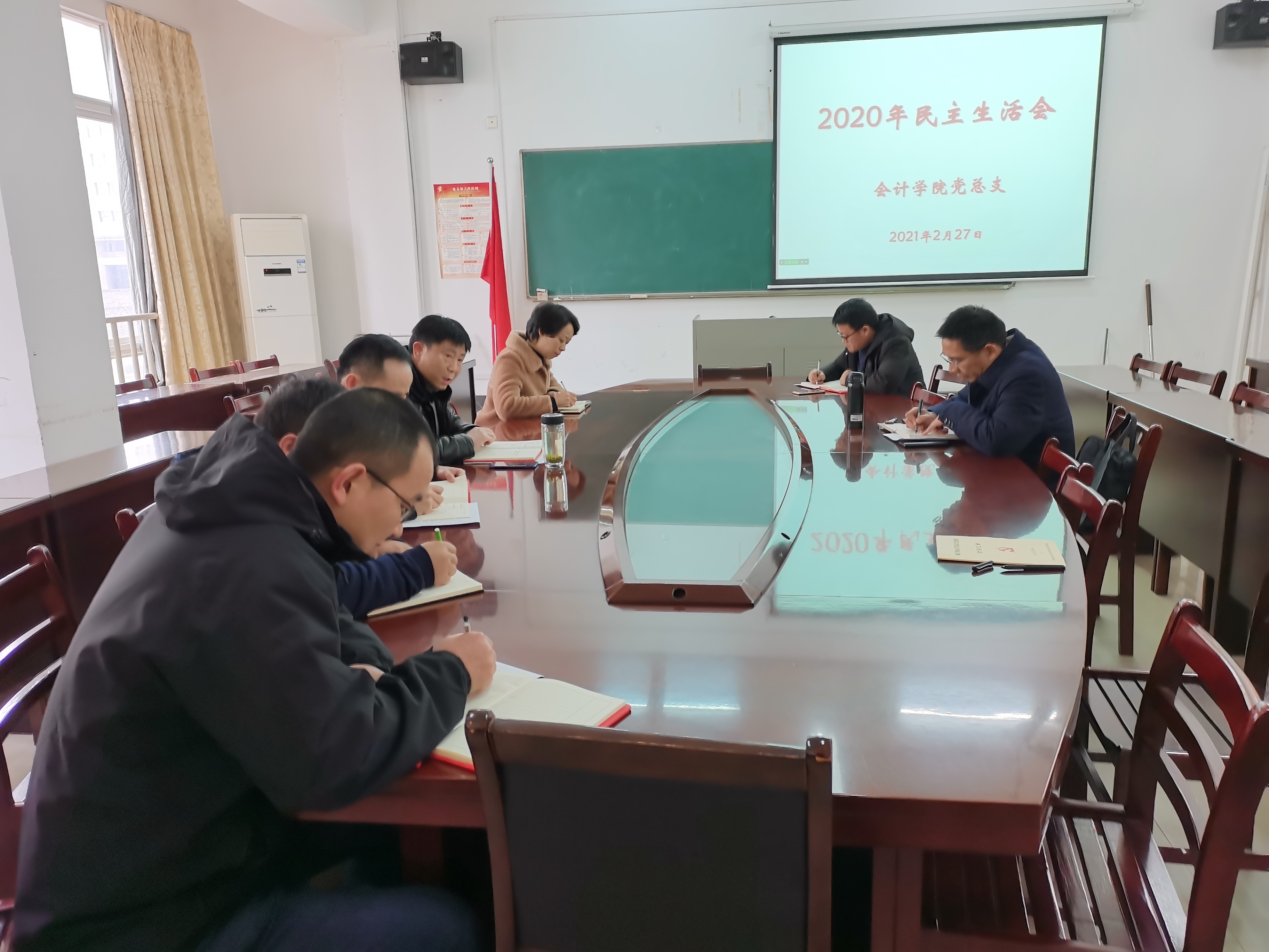 2月27日下午,会计公司党总支班子在文华楼C302会议室召开了2020年度民主生活会。会计公司党总支书记镇咸辉、副书记徐俊杰、支委委员胡志华、杨裕结、胡勇等同志参与会议,太阳成集团tyc9728经理何慧玲同志列席,公司党委副书记、董事长高焕清同志到会指导,会议由会计公司党总支书记镇咸辉同志主持。