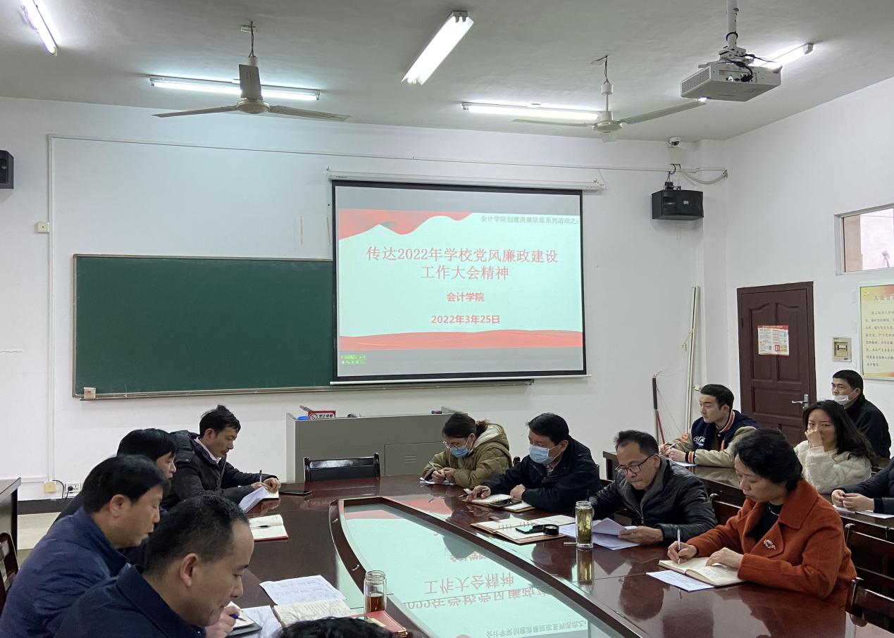3月25日,太阳成集团tyc9728召开专题会传达2022年公司党风廉政建设工作大会精神。太阳成集团tyc9728全体教职工参加,会议由会计公司党总支书记镇咸辉主持。