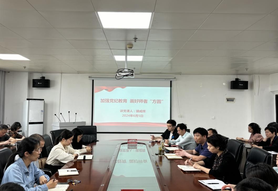 党总支书记镇咸辉传达了高焕清书记在全校领导干部警示教育大会上的讲话精神,并总结了前期党纪学习教育的开展情况。会上镇咸辉还讲授了题为:加强党纪教育,画好师者“方圆”的党纪学习教育专题党课。他结合公司工作实际,讲到了学习《条例》的现实意义,贯彻执行《条例》的必要性,号召全体党员要学纪、知纪、明纪和守纪,确保在政治立场、政治方向、政治原则、政治道路上同党中央保持高度一致。要做到在任何时候任何情况下都能坚守党的纪律和规矩,始终做到心中有党、心中有民、心中有责、心中有戒。要保持敬畏之心,恪守党纪国法,加强自我约束,提升自律能力。要通过深入学习,明确行为标准,做到言行一致,表里如一。