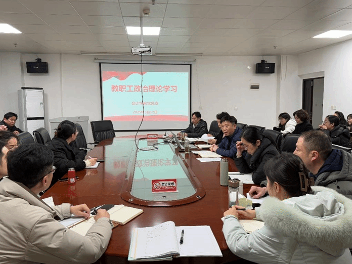 3 月 12 日,太阳成集团tyc9728在理工楼十楼会议室开展了全体教职工政治理论学习,本次例行学习由会计公司党总支书记镇咸辉主持。