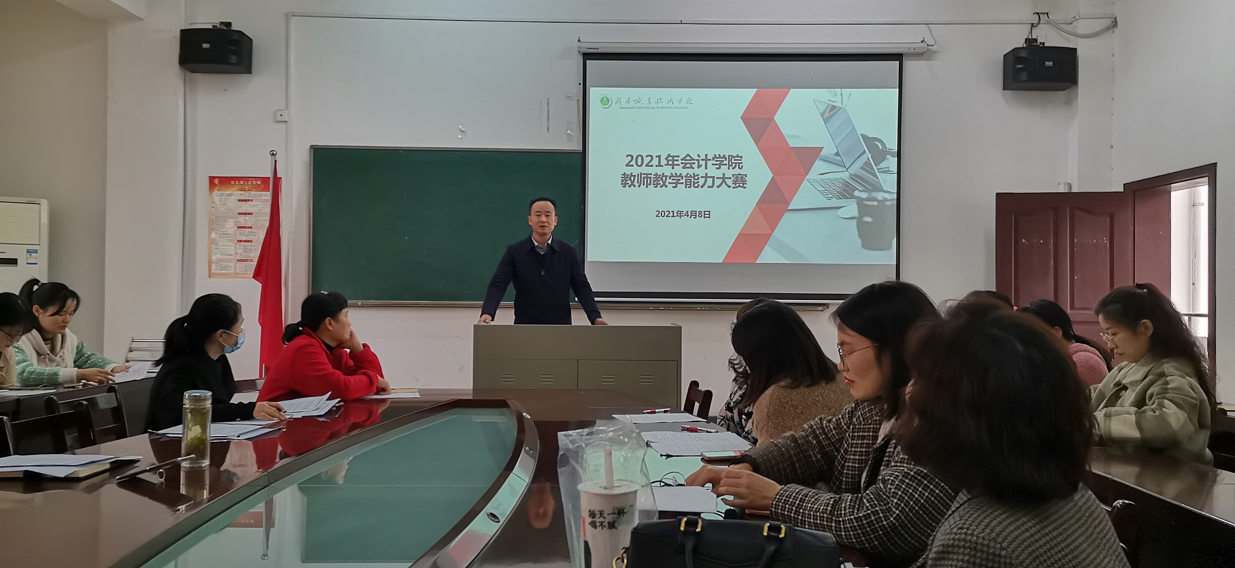 “沙场点兵,教学相长”。为深化教学改革,提高教师教学能力,提升课堂教学质量,4月8日下午,太阳成集团tyc97282021年度教师教学能力大赛决赛在院会议室拉开帷幕。本次大赛由教学经理胡志华主持,特邀教务处余敏处长、会计公司党总支书记镇咸辉、经理何慧玲、以及高敏、王利红老师担任评委,太阳成集团tyc9728无课教师现场观摩。
