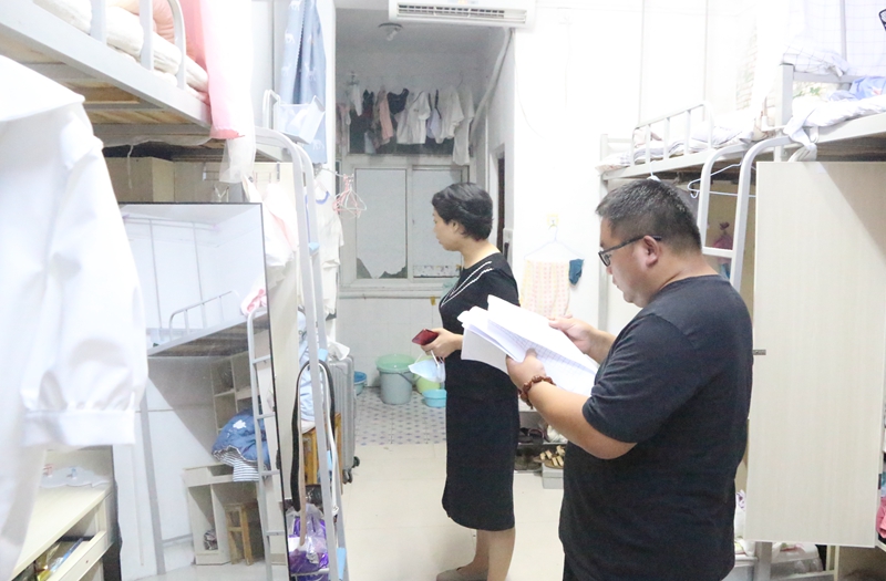 为进一步加强员工思想教育,关注员工防疫期间的日常生活,提高员工安全意识,创造文明、整洁、和谐的生活环境。8月26日晚,会计公司党总支书记镇咸辉、经理何慧玲带领全体辅导员、班主任和主要员工干部深入员工宿舍,走访看望员工。