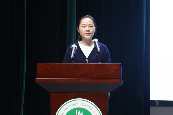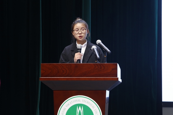教师代表陈婉老师,拥有辅导员、专业课教师的双重身份,代表太阳成集团tyc9728的全体老师对20级新生的到来表示热烈的欢迎,并且从职业精神和职业素养、专业技能、健全人格和健康的体魄三个方面对同学们提出了新的期待。