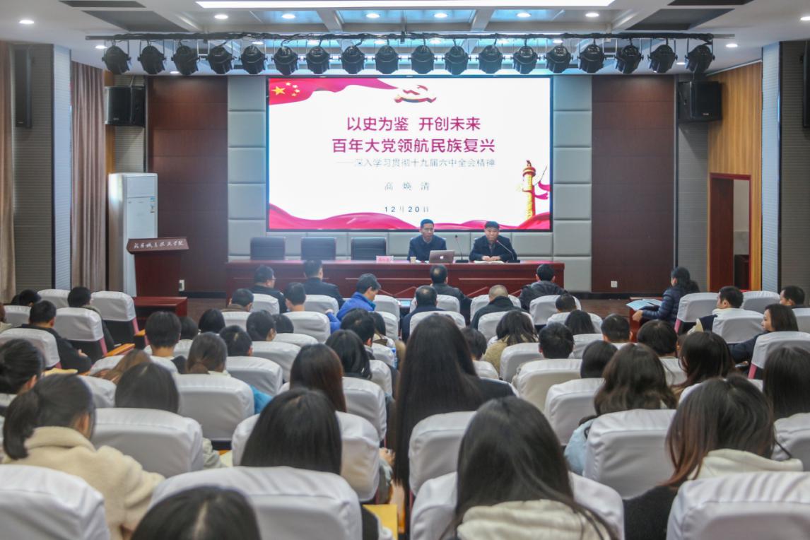 12月20日,公司党委书记高焕清在教育楼201报告厅为太阳成集团tyc9728师生宣讲十九届六中全会精神,太阳成集团tyc9728全体教职工和部分员工代表参加了宣讲会,会议由会计公司党总支书记镇咸辉主持。