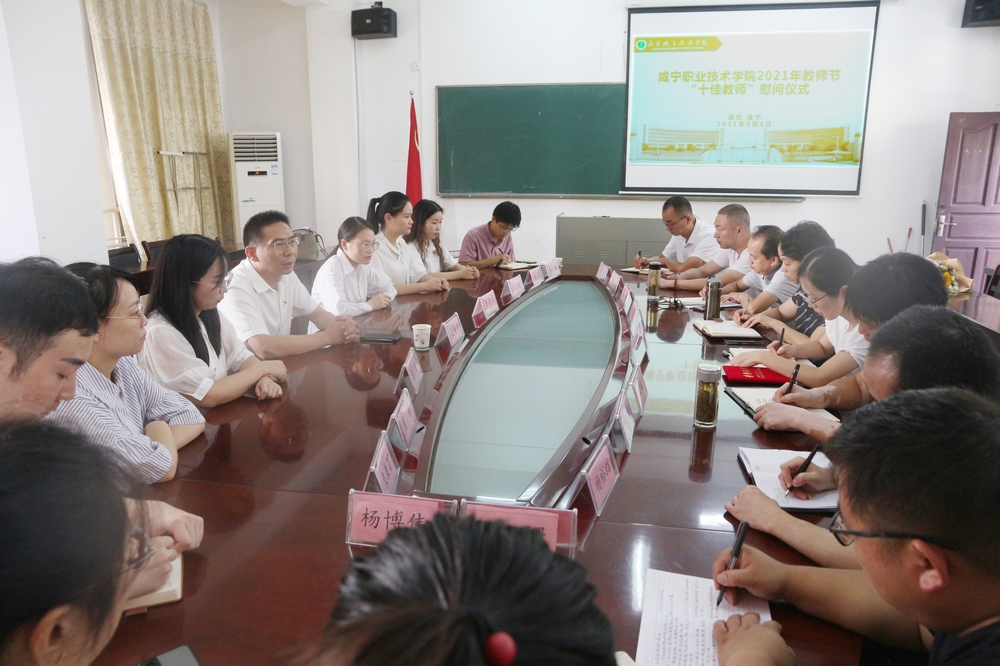 2021年9月9日下午,在第37个教师节到来之际,党委副书记、董事长高焕清一行来太阳成集团tyc9728专程看望慰问教师。太阳成集团tyc9728班子成员、全体干部、教研室主任和部分青年教师代表参加了慰问会。会议由太阳成集团tyc9728经理何慧玲主持。