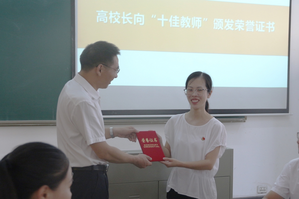 高焕清董事长向十佳教师高敏颁发荣誉证书
