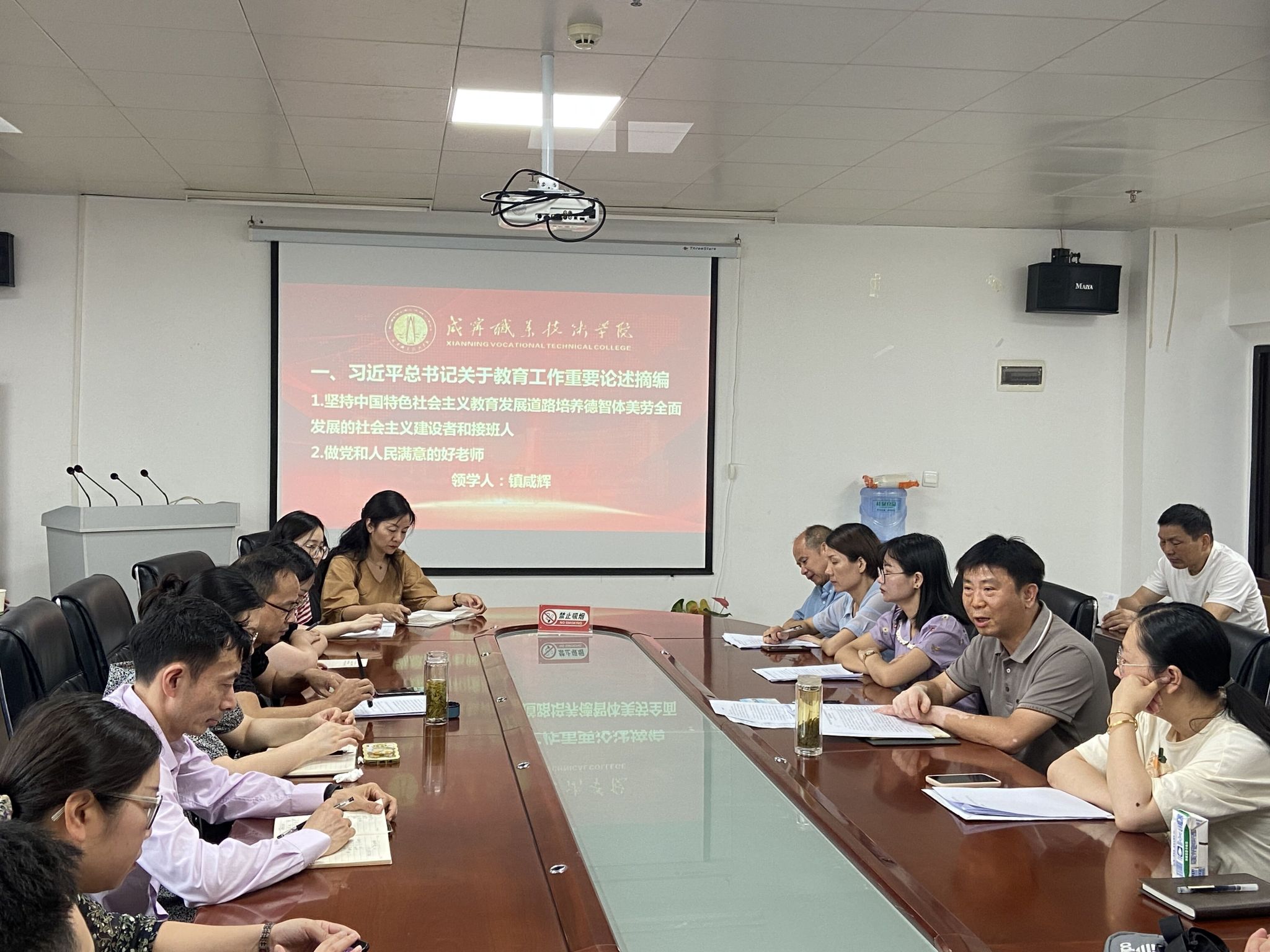 7月8日上午,在会计公司党总支书记镇咸辉的主持下,全院开展了系列主题学习。首先镇咸辉、何慧玲、杨帆同志领学了《习近平总书记关于教育工作重要论述摘编》中部分重要讲话,接下来开展视频学习,大家集中观看学习了全国优秀教师代表张桂梅老师的感人事迹,由此在全体教职工中产生强烈的职业共鸣。紧接着,由公司相关教师先后领学教育相关的法律法规及政策文件,以及公司的相关制度文件,进一步加深教师的职业素养认知,最后通过关于教育部曝光8起违反教师职业准则典型案例的视频学习,对全体教职工进行深刻的警示教育。