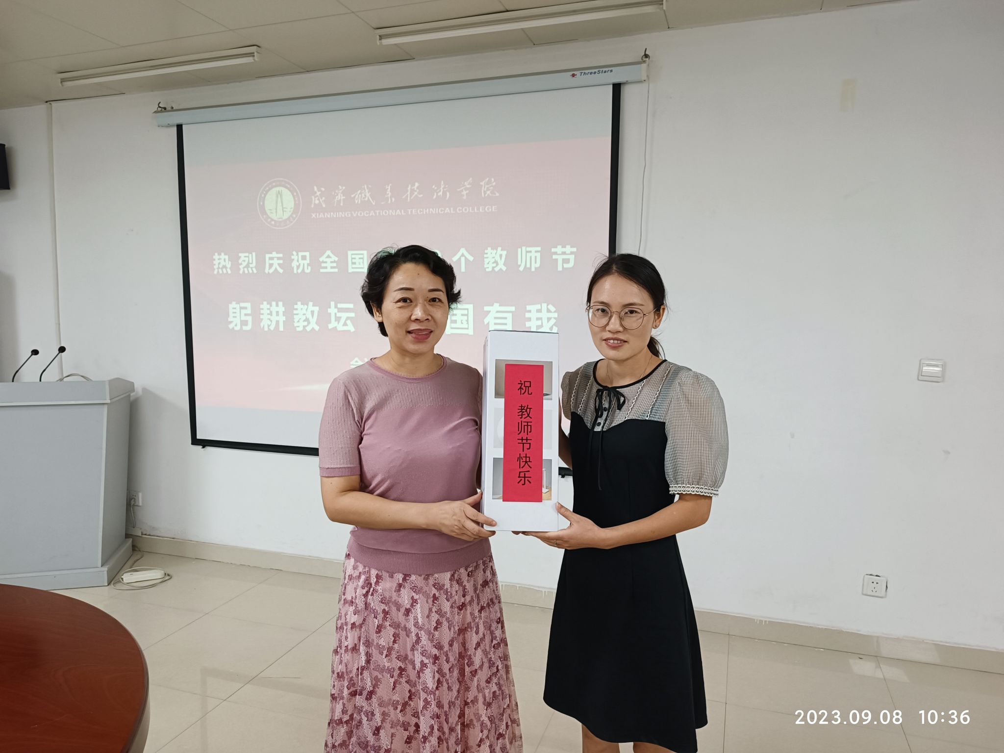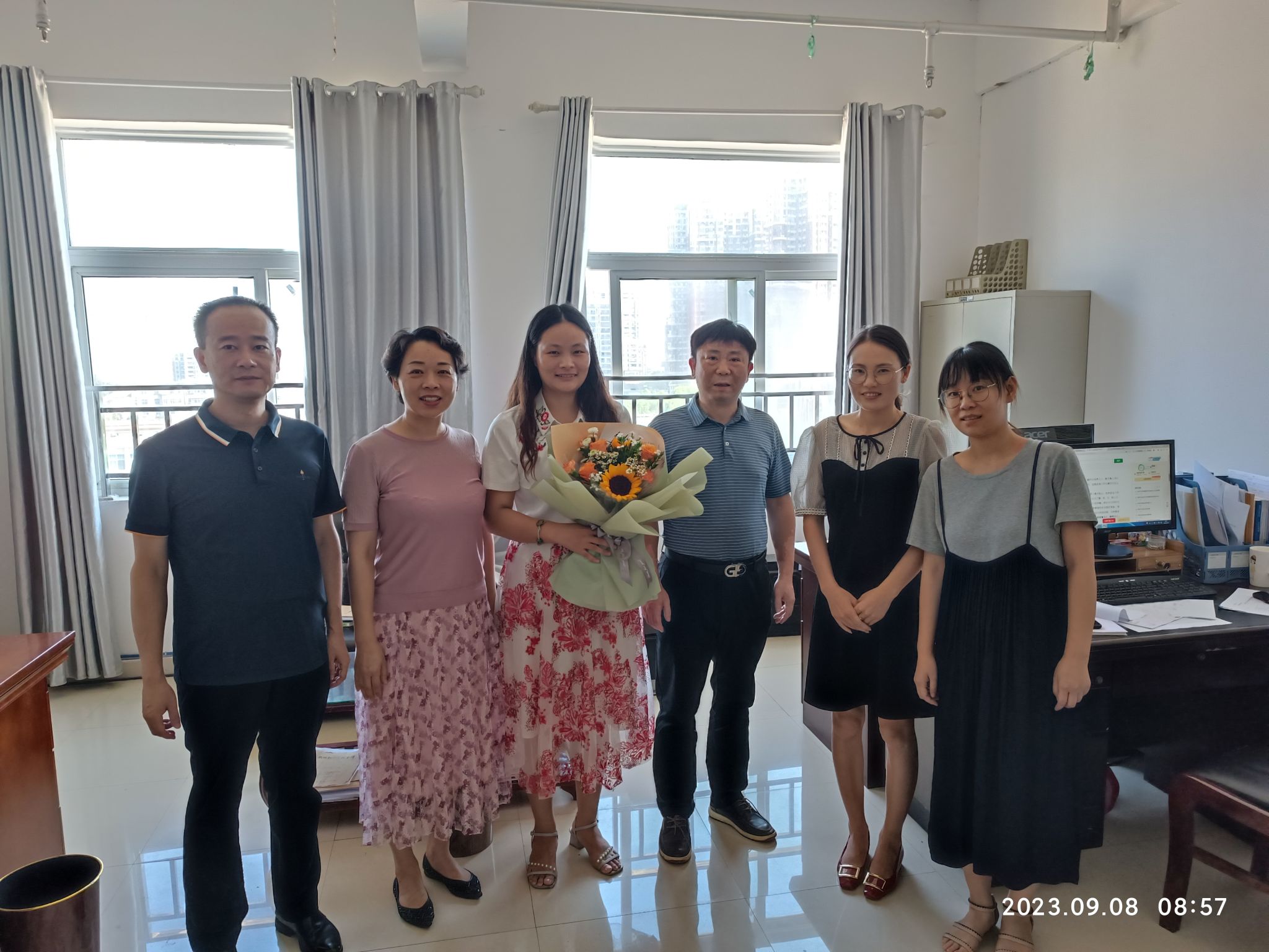 首先,太阳成集团tyc9728领导班子深入办公一线,向全体教师致以崇高的敬意和节日的问候。同时向优秀教师代表曾罗婧递上鲜花,表达对教师们的深深敬意和感谢之情。