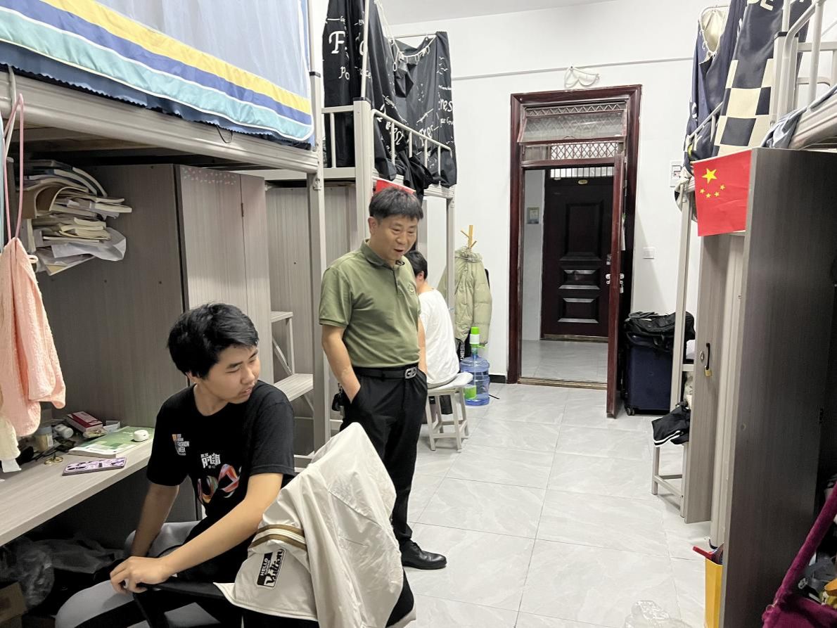 排查过程中,镇咸辉书记和何慧玲经理带队逐一走访员工寝室,重点检查了卫生状况、用电安全及违禁物品等情况,并与同学们亲切交流,了解他们的学习和生活需求。镇咸辉强调,宿舍安全是校园安全的重要环节,每位同学都应增强安全意识,严格遵守公司管理规定,杜绝违规用电、私拉乱接等行为,共同营造安全、整洁的居住环境。