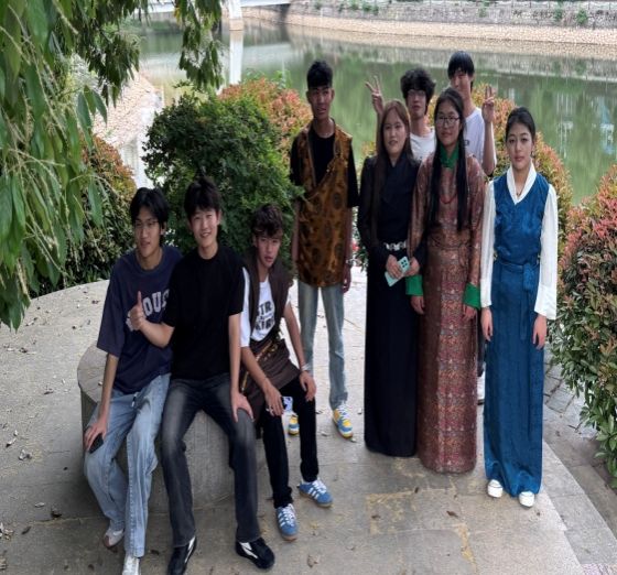 活动以藏族同学扎西央宗与巴桑吉拉的《吉祥锅庄》拉开序幕,身着传统藏袍的同学们手挽手围成圆圈,踏着悠扬的藏歌节奏,展现高原民族的热情与豪迈。藏族同学热情的邀请了同学们一起学习、交流藏族舞蹈,还有蒙古族等民族舞蹈。
